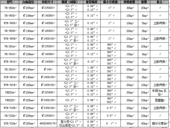 四、YR系列多齒分度臺技術(shù)規(guī)格:
